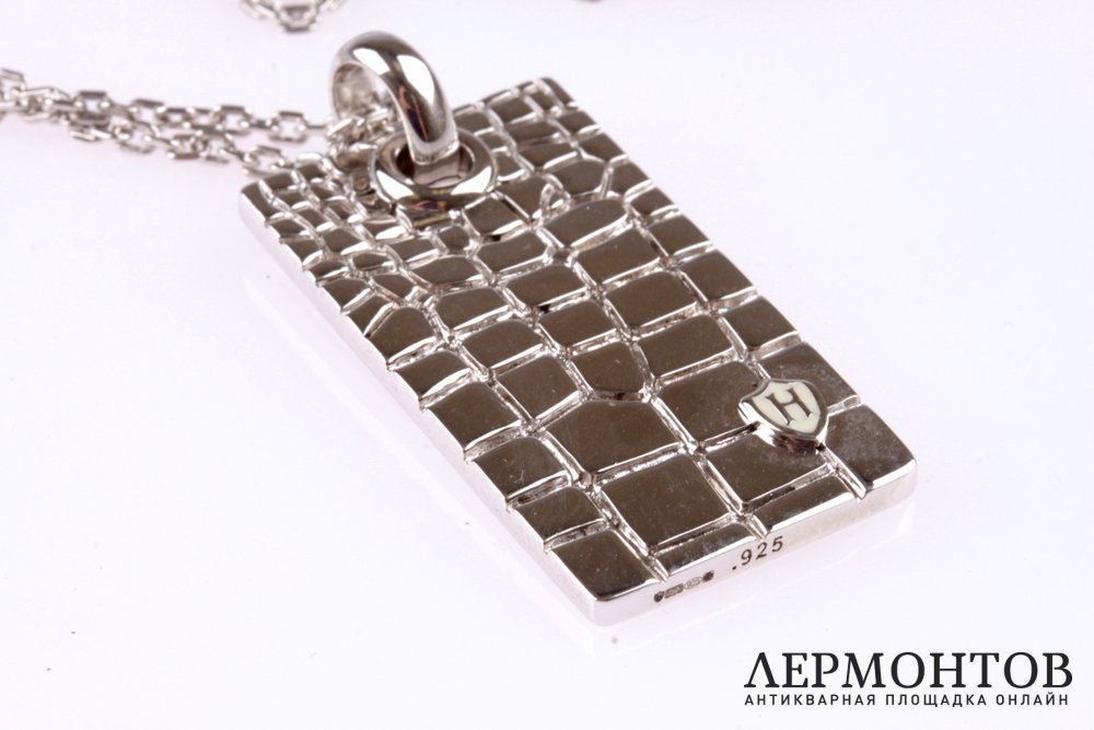 Цепь с подвеской известной компании Hoxton London. Изготовлена из серебра 925 пробы, подвеска декорирована орнаменотом в виде крокодиловой кожи. Замечательный подарок!